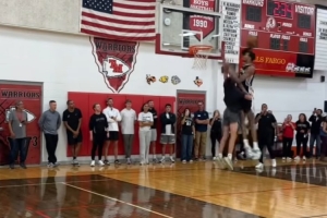 体育资讯9月11日讯 今天马刺举行球迷相关活动,在现场文班亚马与球迷对位,先是大帽对方,随后拿到进攻球权后直接突破隔扣对方。