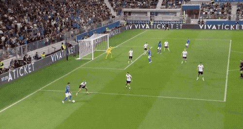 第54分钟,迪马尔科的传中被顶出,托纳利的劲射,被卡尔·海因奋力扑出。